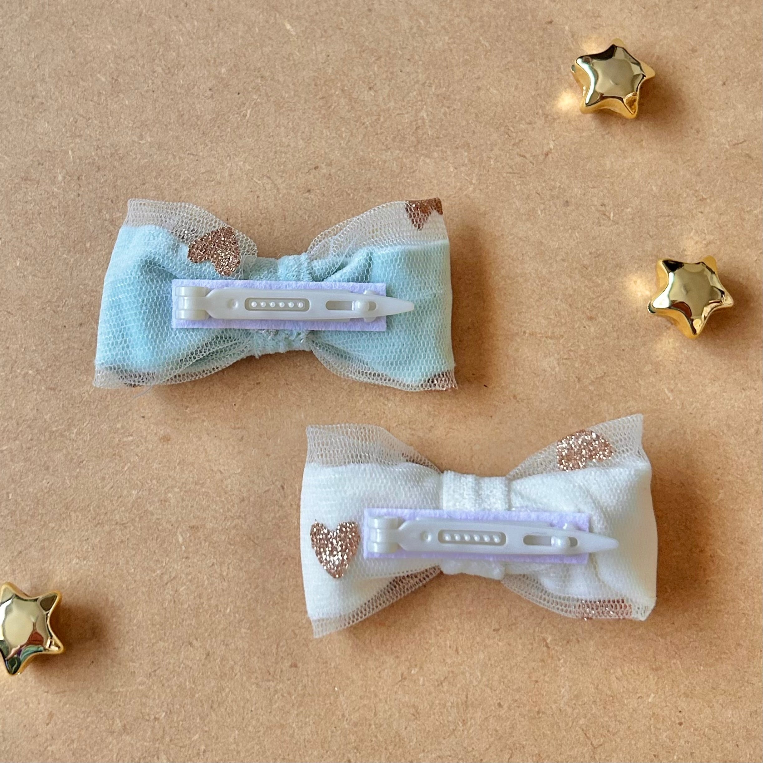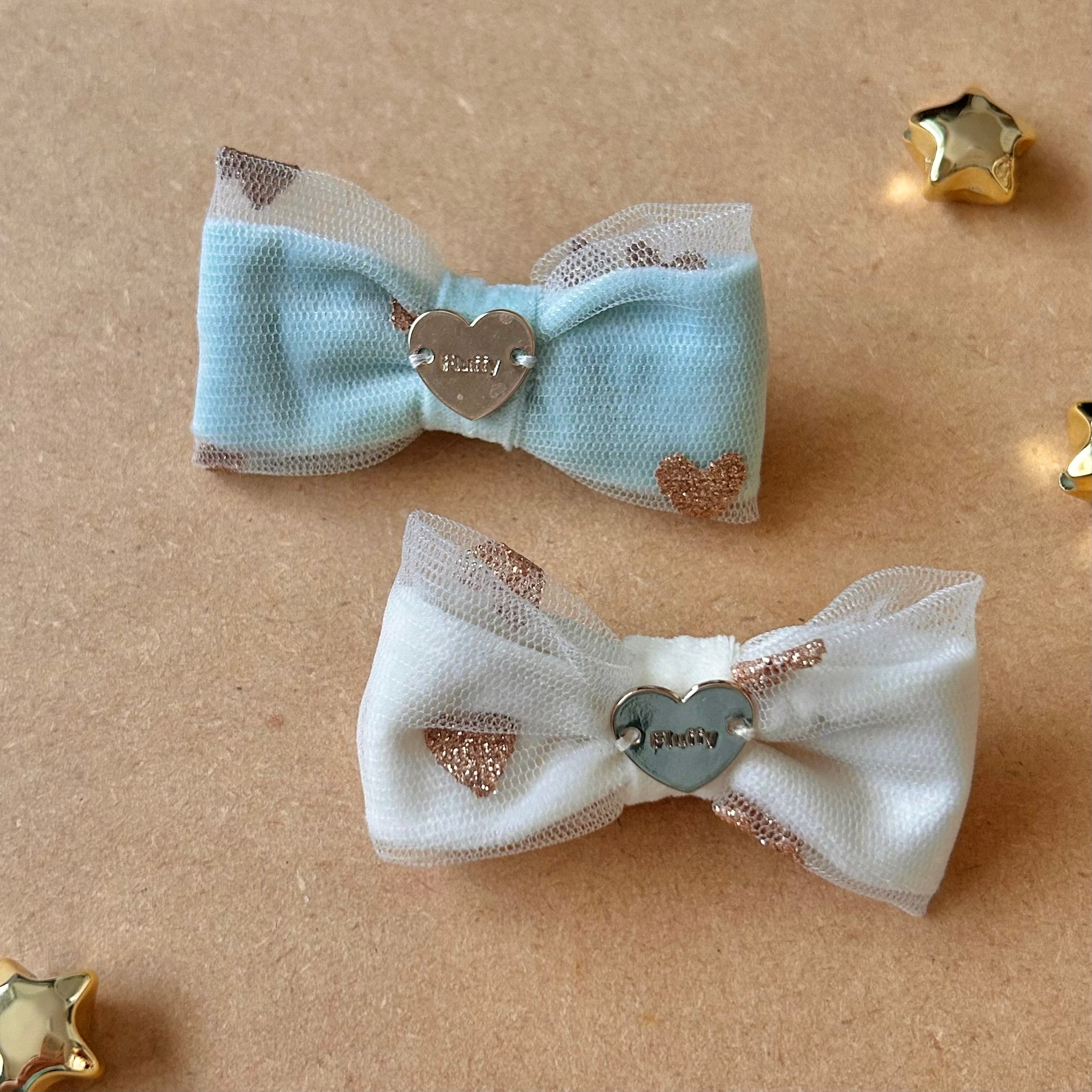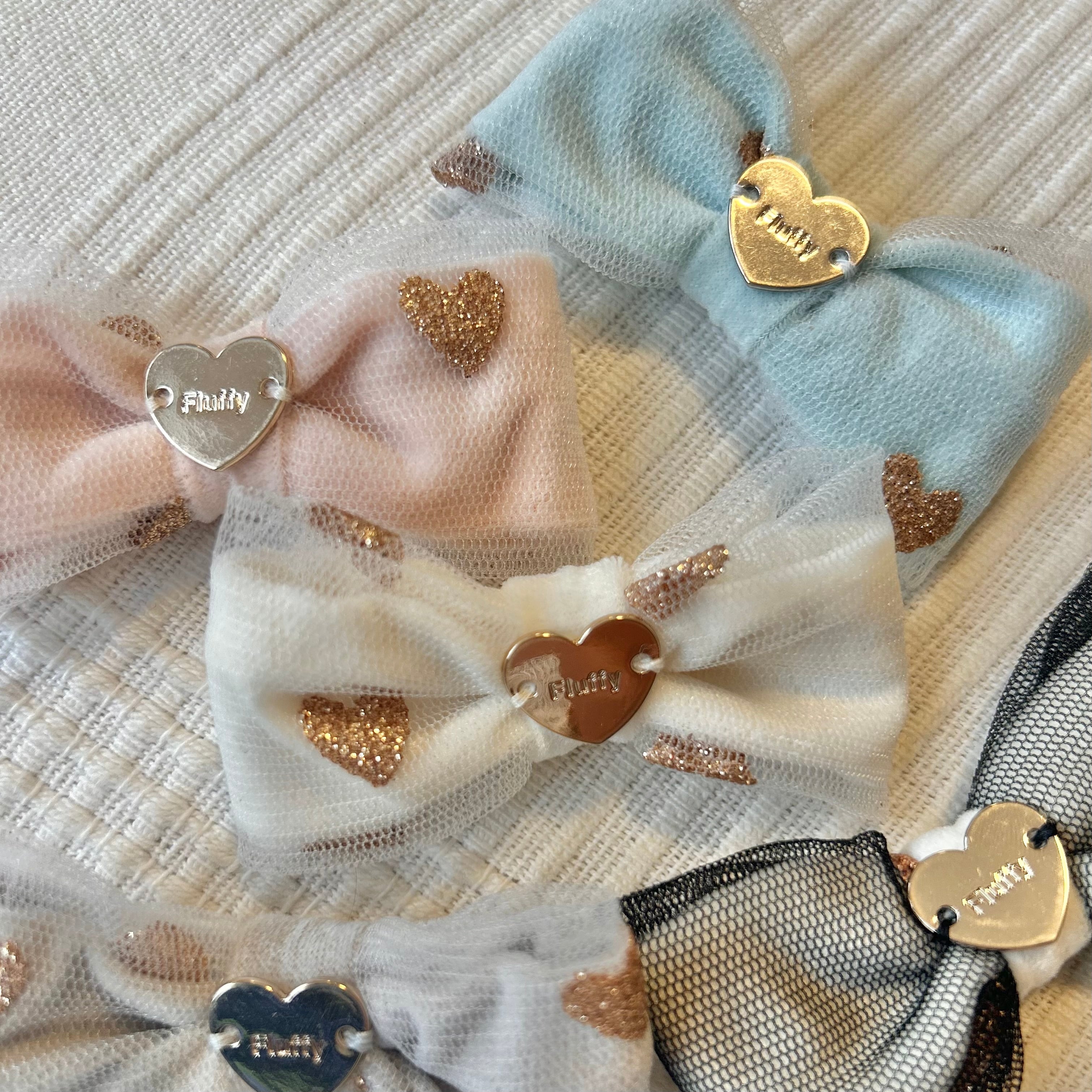 ふんわりシアーベロアに、きらめくハートのラメチュールを重ねた、とびきりラグジュアリーなバレッタ♡